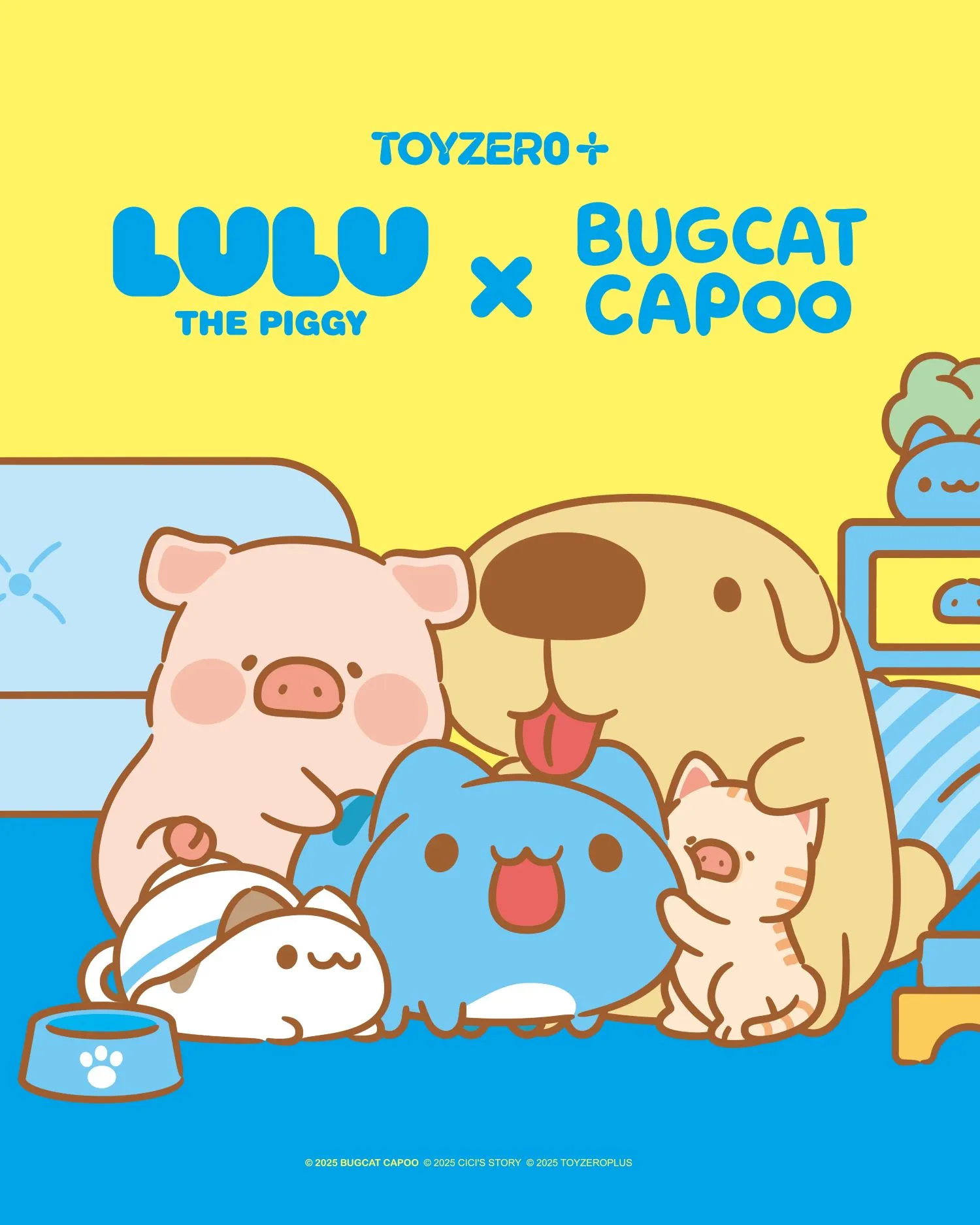 本次合作由 TOYZEROPLUS 與插畫家 亞拉 Yara 聯手打造,將慵懶療癒的罐頭豬LuLu與眼睛為食物而發亮的咖波,帶上想像中的餐桌世界。LuLu豬以輕鬆自在的理念陪伴現代人,咖波則以古靈精怪的吃貨形象擄獲全亞洲粉絲,兩者碰撞出滿滿可愛火花。