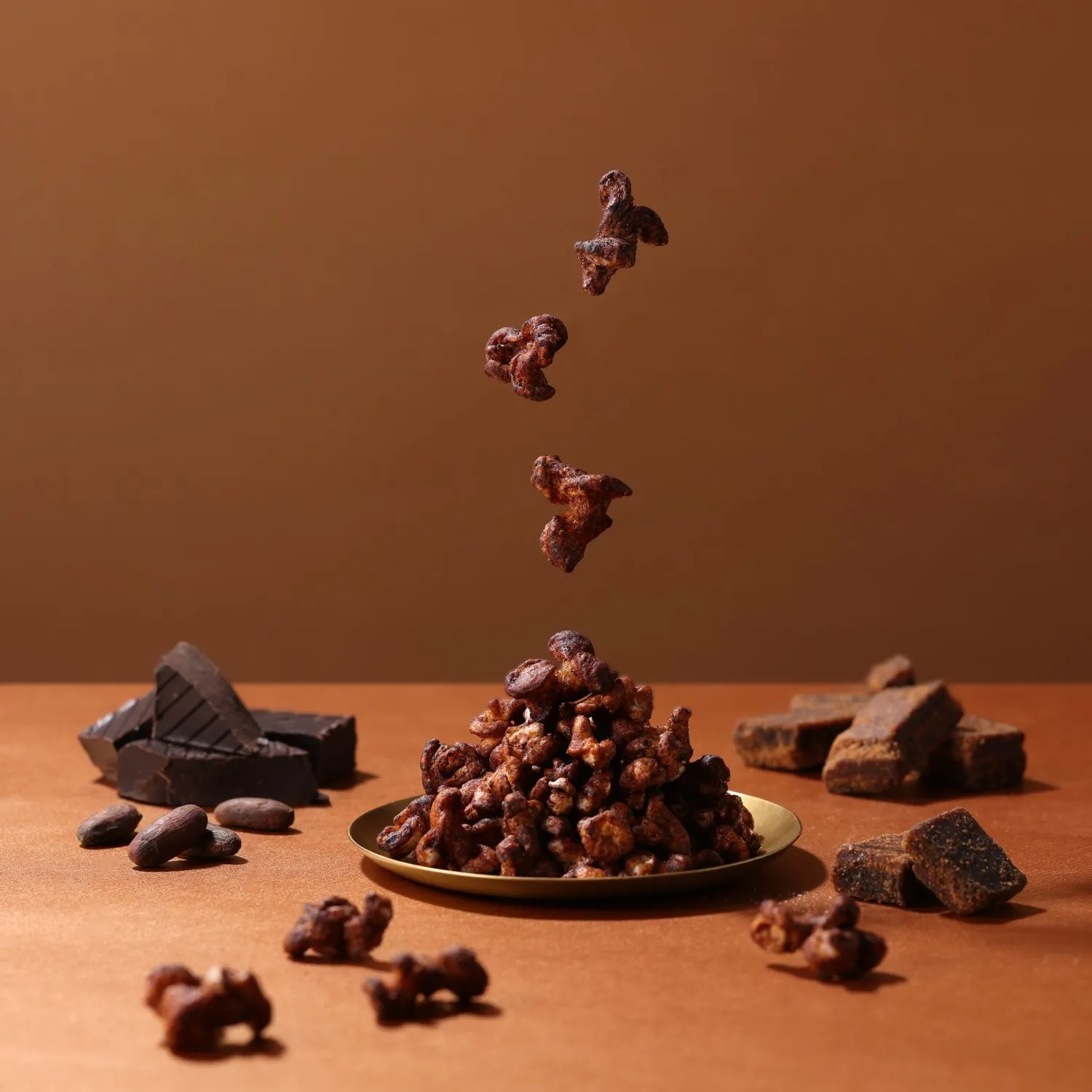 實際品嚐時,第一口就能感受到米米花本身非常酥脆爽口,不會有黏牙或油膩感;可可香氣在入口後慢慢展開,濃郁卻不甜膩,尾韻帶點黑糖的溫潤甜感。