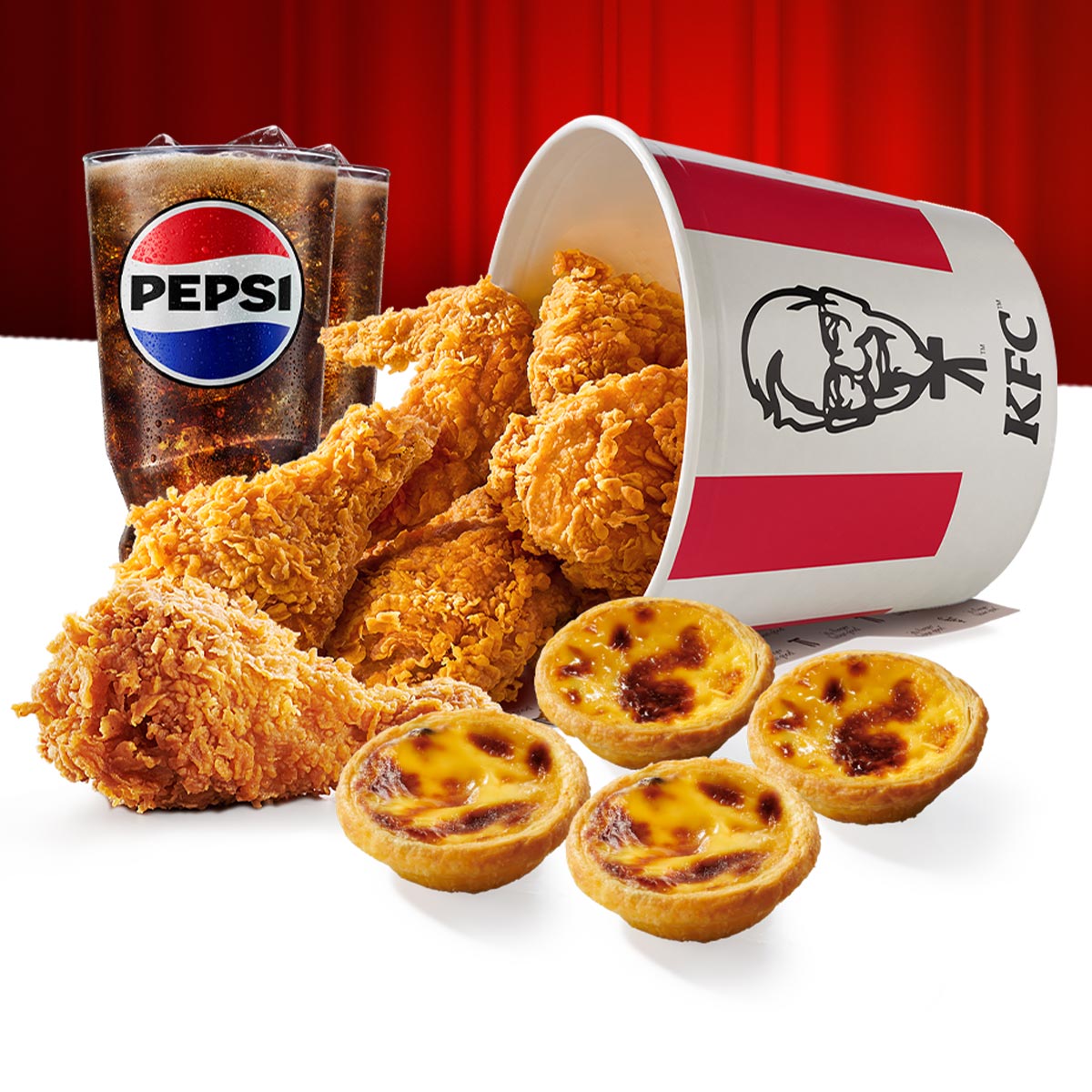 咔啦脆雞x4+4塊上校雞塊x1+香酥脆薯(大)x1+原味蛋撻x4+百事可樂(中)x2 |