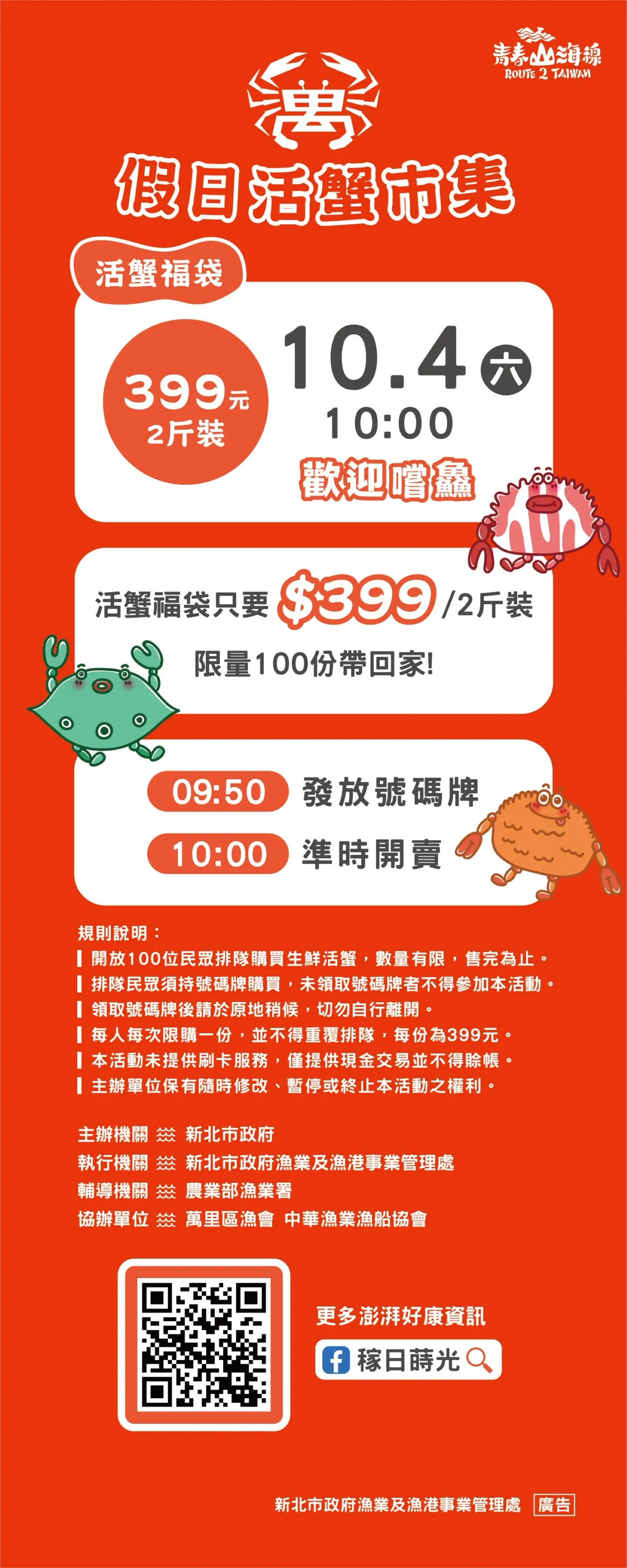 野柳假日活蟹市集10/4登場|現買現蒸萬里蟹、399元限量福袋、捕蟹體驗一次滿足!