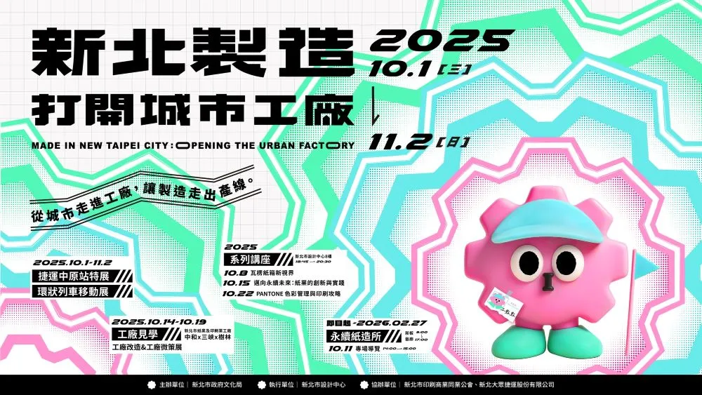 - 系列專題講座與導覽|10月15日及10月22日將分別聚焦紙業永續創新與印刷色彩管理,更同時規劃「永續紙造所」專場導覽,帶領民眾重新認識紙材。