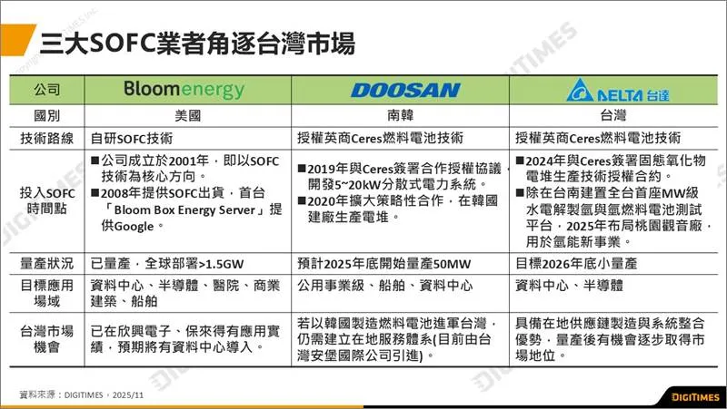 斗山、台達電子積極追趕 SOFC競局白熱化
