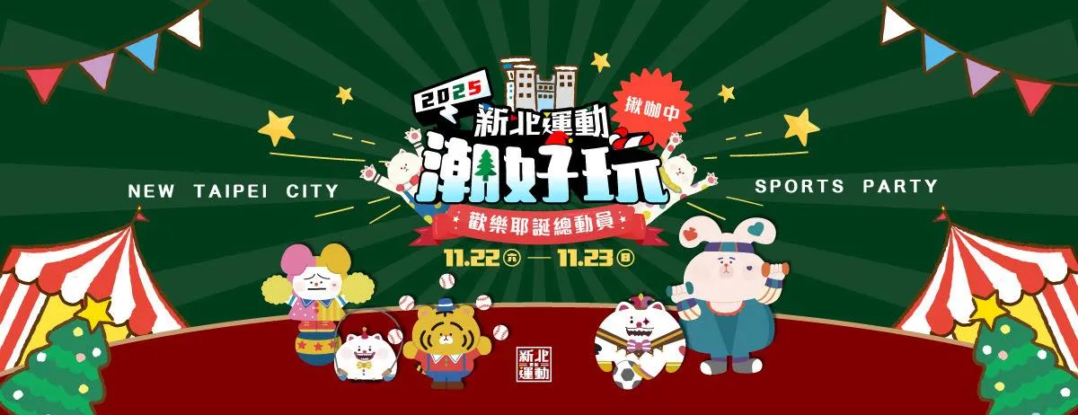 新北市政府體育局以「新北運動潮好玩 歡樂耶誕總動員」為主題,將於11月22日、11月23日在新北市民廣場打造年度耶誕運動派對,邀請多支新北職業運動隊、人氣啦啦隊女孩接力登場,壓軸更由亞洲有氧天王潘若迪老師帶領全場動起來。此外,活動當日將有超過40個特色攤位與攤位限定活動,社群更同步祭出Switch、GoPro、相印機等豪華好禮,讓民眾一次玩到飽、抽到爽!