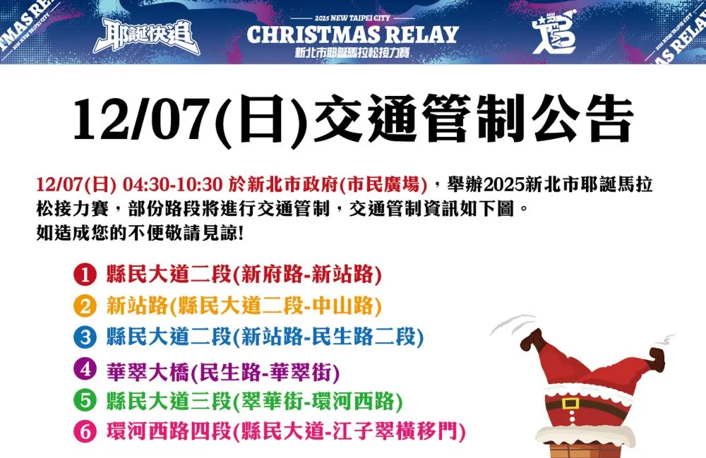 「2025新北市耶誕馬拉松接力賽」12/7登場 交通管制路段一次看!