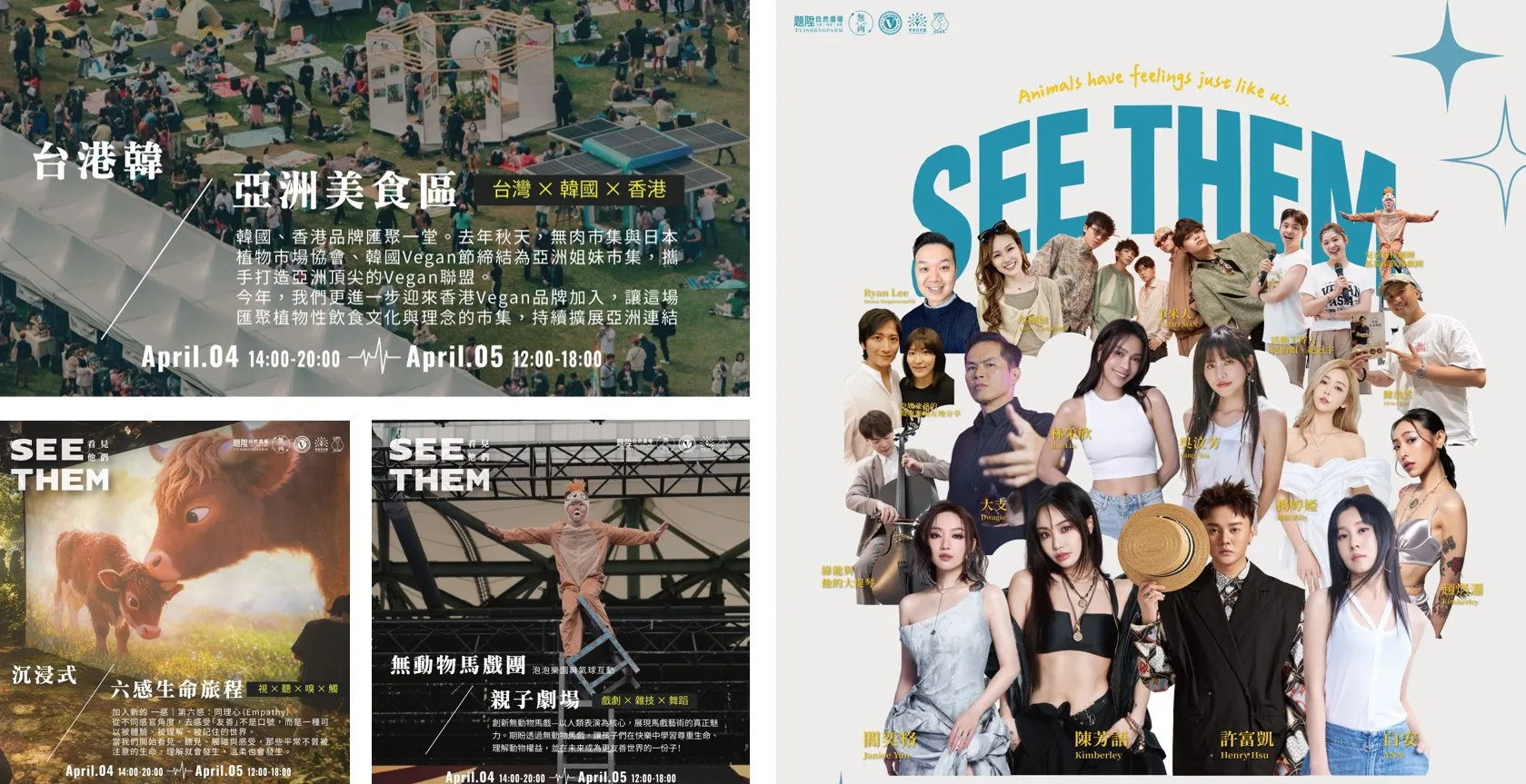 看市集不只買東西、吃好料,這次要邀你「用六感」看見生命。由題陞自然農場與純植行動聯盟主辦的 Vegan Asia 無肉市集,將於 4月4日至5日(依主辦公告為準) 在 台北表演藝術中心 推出年度主題策展 《看見他們 See Them》,結合「六感沉浸式策展空間」、「跨界音樂展演」與「亞洲百大 Vegan 跨國市集」,以更貼近日常的方式,帶領大眾重新思考人類、物種、土地與未來的共生關係!