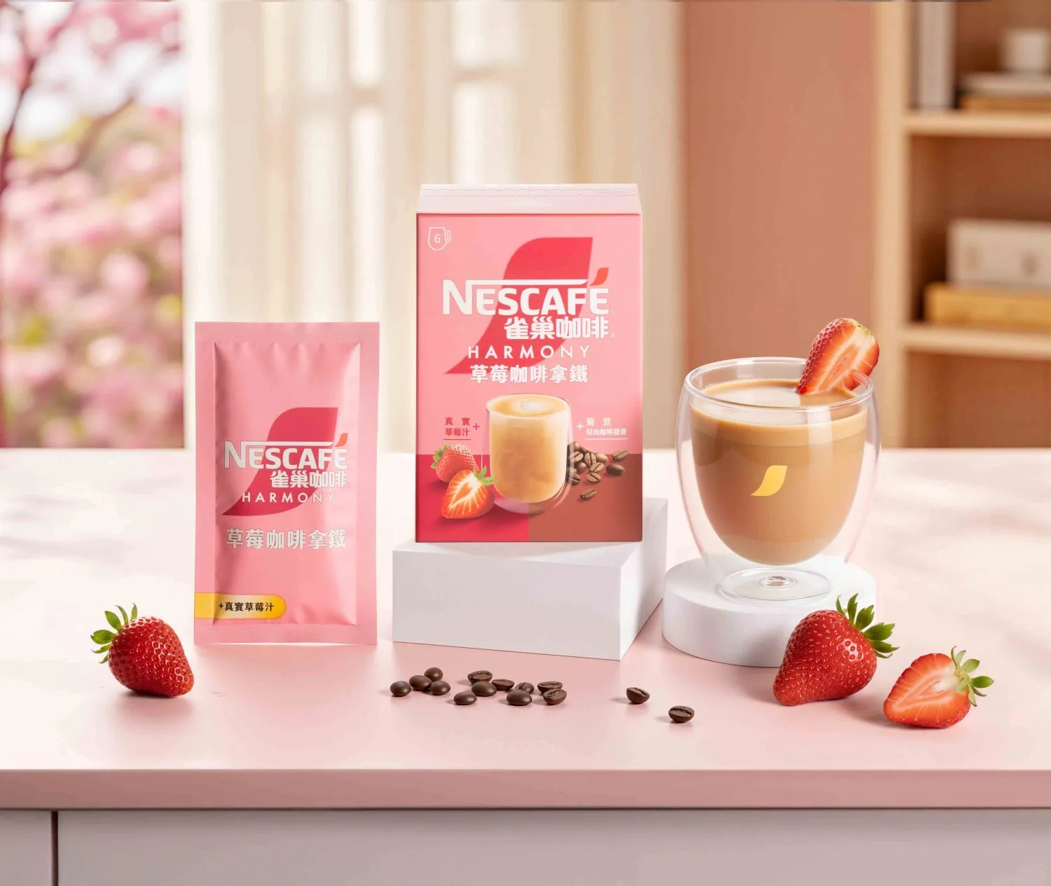 - 「雀巢草莓咖啡拿鐵」添加真實草莓果汁粉,自然香甜的草莓味搭配香醇咖啡與濃郁奶香,實現甜而不膩的完美比例!