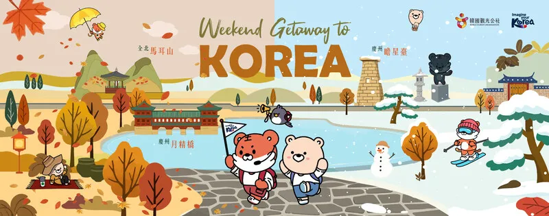 「逃離日常 週末玩轉韓國」活動網頁將於 10月20日下午5時 正式上線,整合 機票、住宿、套票與旅遊產品優惠,並同步提供各地秋冬慶典、必訪景點與在地美食資訊,協助旅客輕鬆規劃出走行程。