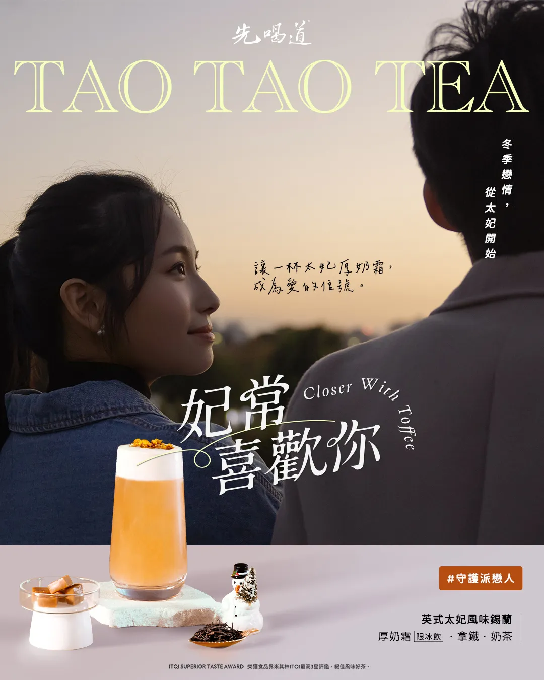 先喝道推出冬季限定妃常喜歡你「太妃厚奶霜系列」,英式太妃風味搭配濃厚奶霜,再加上椪糖脆粒,在濃郁奶霜裡脆脆口感,層層堆疊,讓人感受戀愛的心跳反應。此外,先喝道為歡慶新品,同步於11/27開賣首日推出厚奶霜系列為限冷飲,三款風味皆可享同品項買一送一優惠。