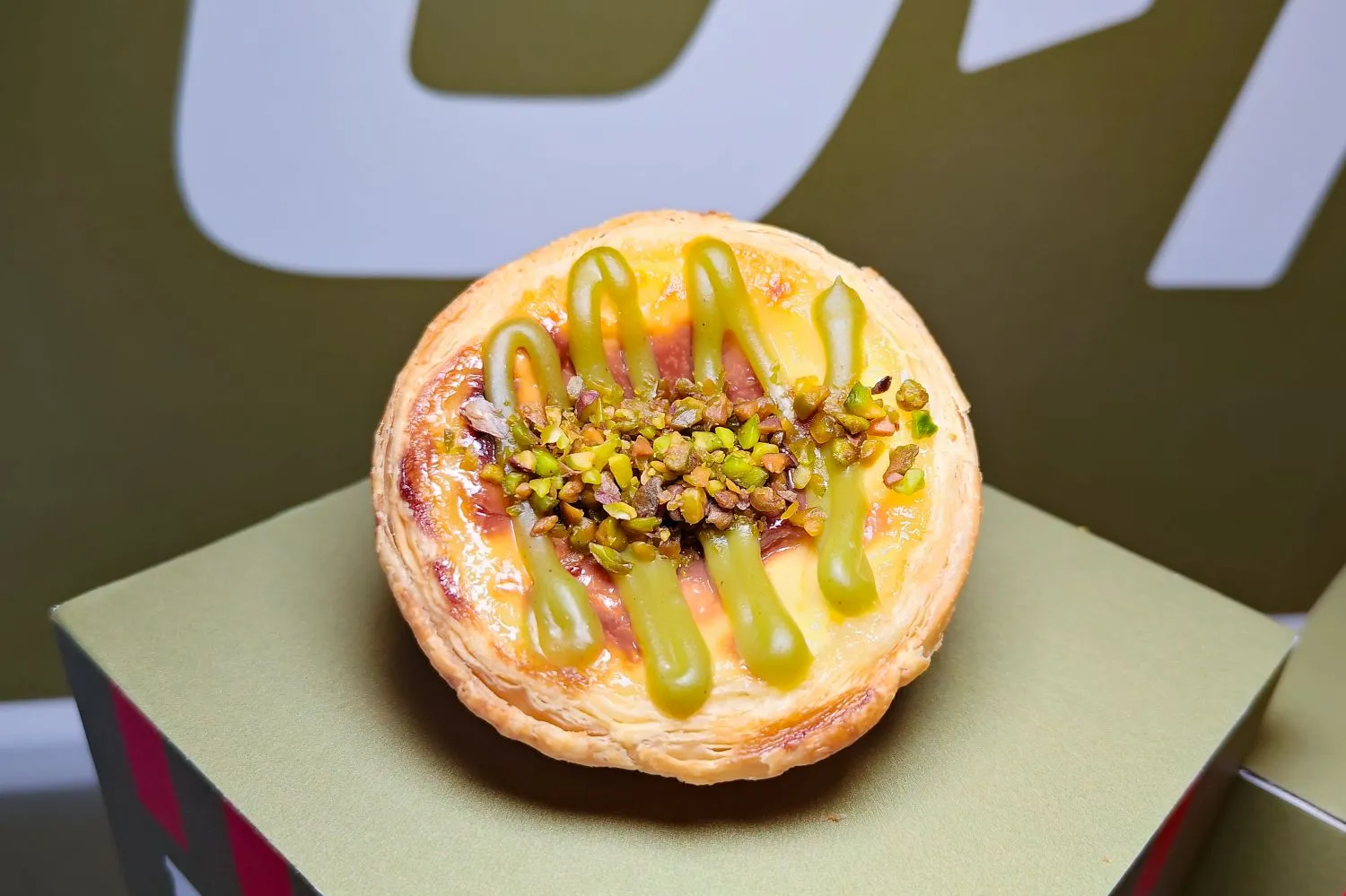 這款「開心果脆粒蛋撻」之所以會讓人有記憶點,關鍵就在它真的不是只有「開心果口味」而已,而是把三種不同層次拆得很清楚: