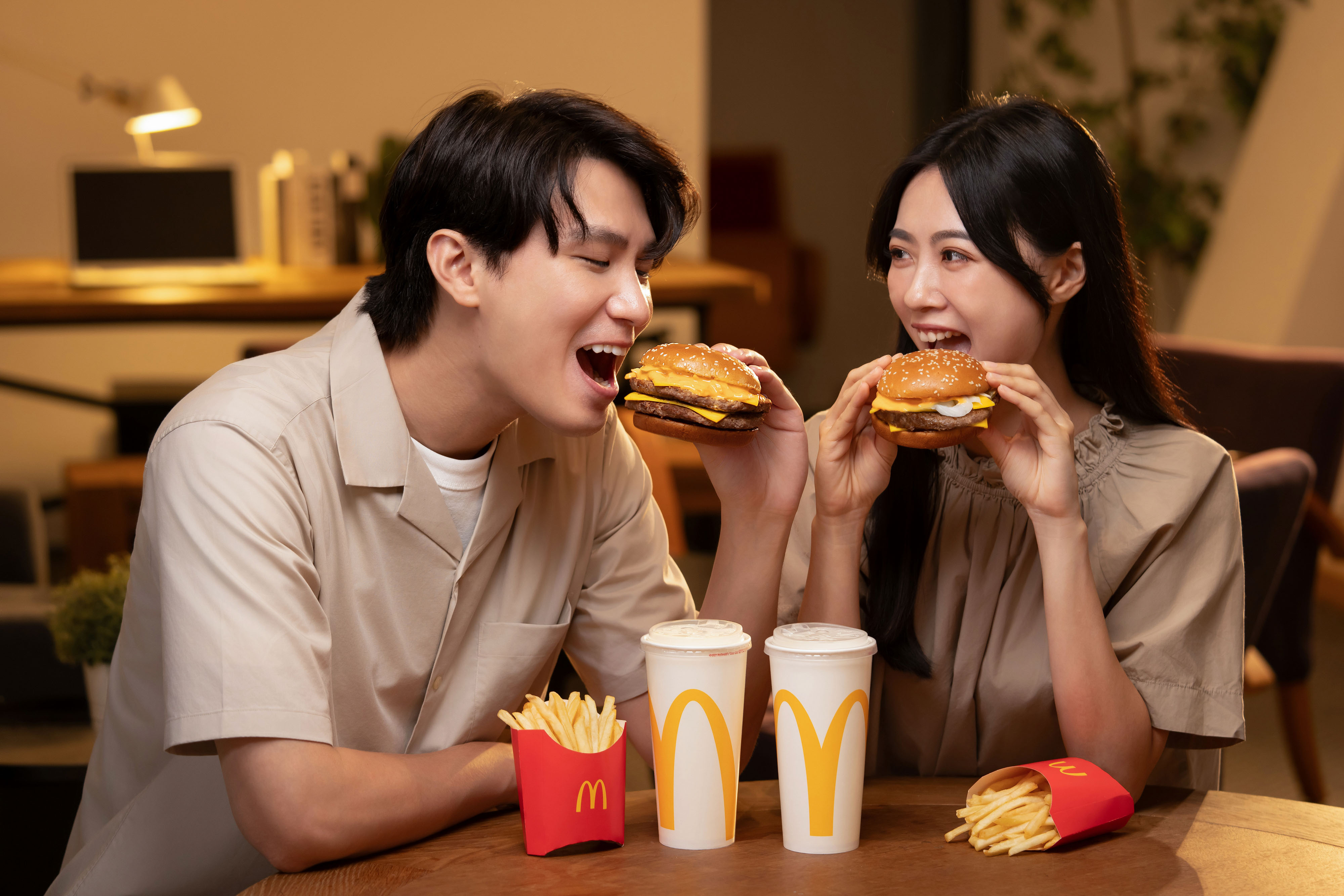 | 雙人共享209元起 | 新品辣味雙層四盎司牛肉堡也宣布加入雙主餐優惠,還有蕈菇安格斯牛肉堡、帕瑪森主廚鷄腿堡、大麥克、勁辣鷄腿堡、雙層牛肉吉事堡、麥脆鷄腿等熱銷產品。雙主餐+4塊麥克鷄塊+中薯+2杯38元飲品,只要209至299元,超殺價格暢享澎拜品項。今年特別新增4塊麥脆鷄腿(原味/辣味),搭配中薯+2杯38元飲品的組合,超殺回饋提供消費者更多元選擇。 | ||