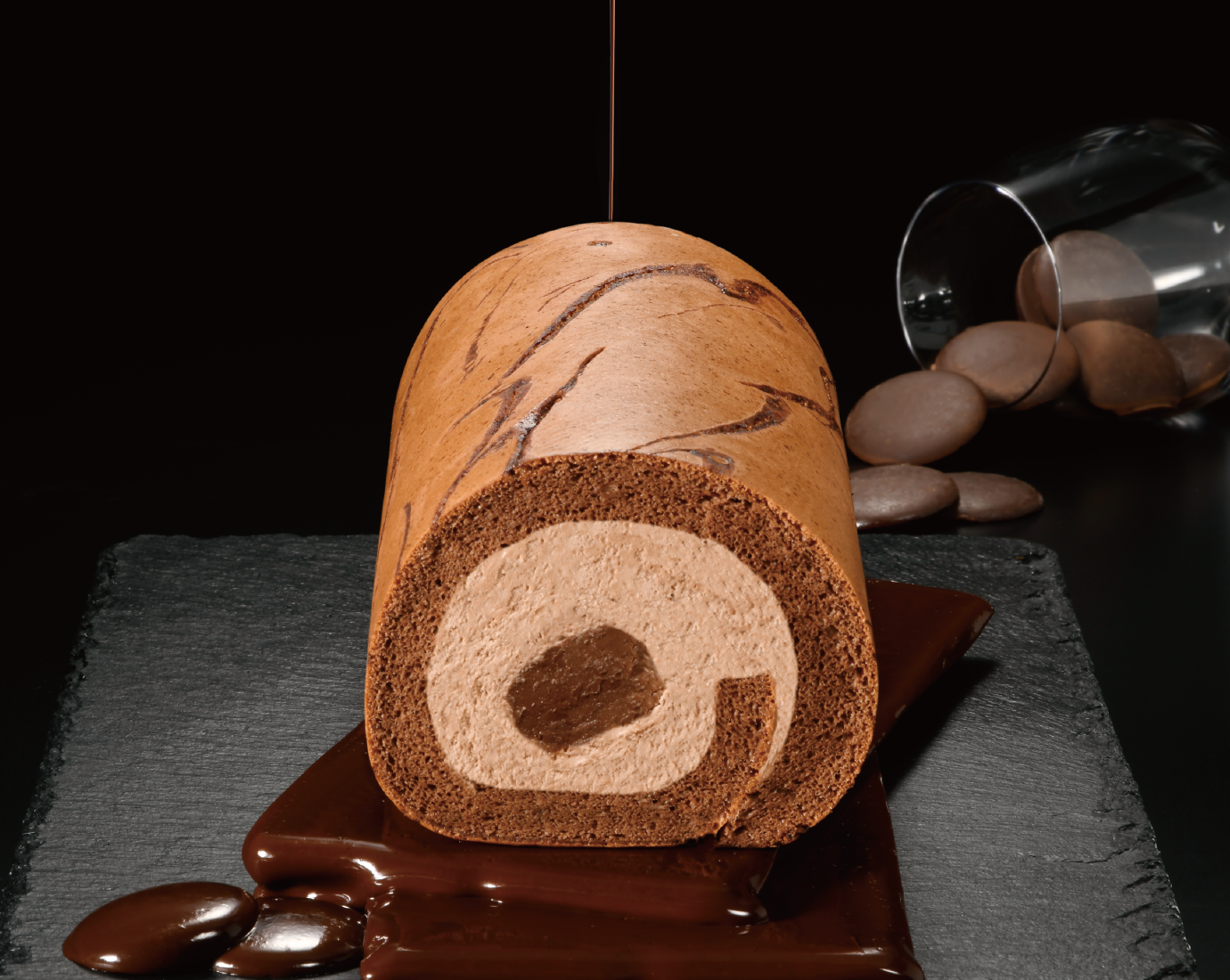 嚴選貝可拉100%純可可粉,在柔軟的泡芙蛋糕體上揮灑充滿文藝氣息的流動線條,捲入整條貝可拉73%生巧克力,與北海道奶霜融合後入口即化的口感讓人不禁著迷,加上巧克力酥菠蘿的搭配,明亮的層次堆疊創造濃郁質感,展現出微苦醇香的大人味。